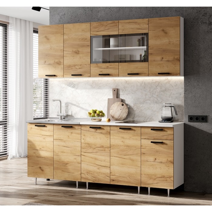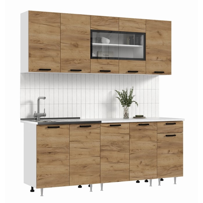 Кухня Рио NEW 2,0 м - идеальное решение для создания современного уютного интерьера. Напольные и подвесные шкафы позволят разместить всю кухонную утварь. Гарнитур состоит из набора шкафов, которые органично комбинируются между собой. Ящики, полки, навесные шкафы, тумбы и пеналы можно менять местами, создавая практичное рабочее пространство.
