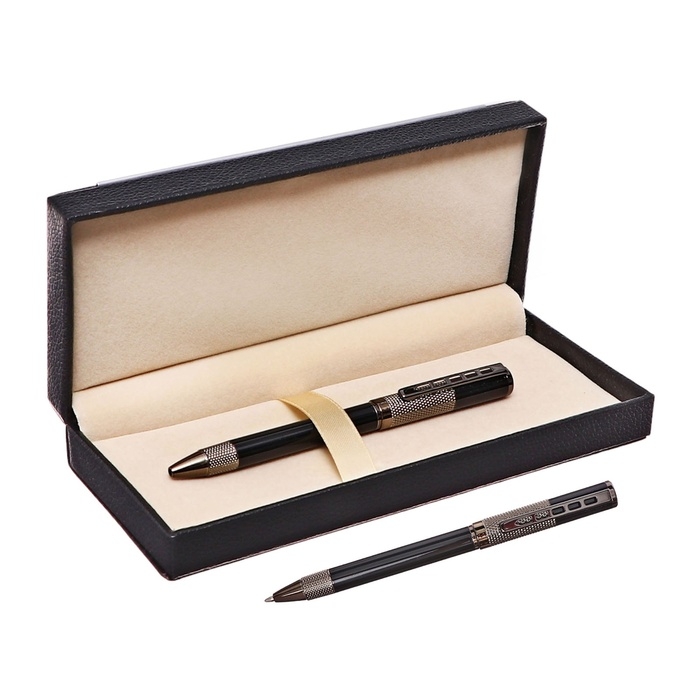 Ручка подарочная шариковая в кожзам футляре поворотная Стиль корпус черный/бронза