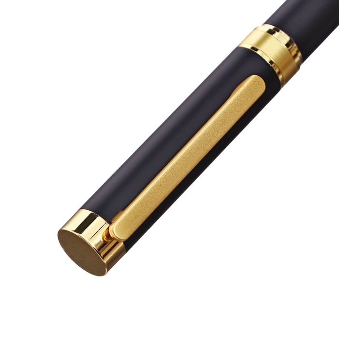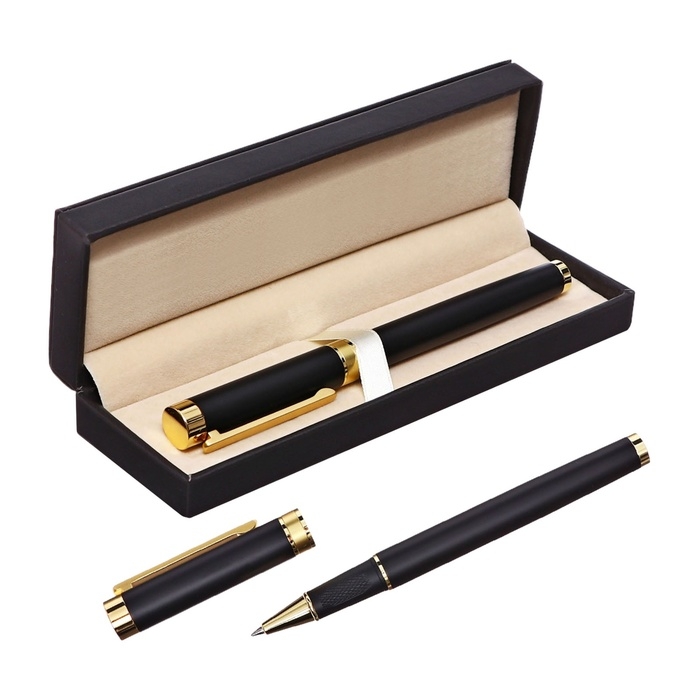 Ручка подарочная роллер в кожзам футляре Офис корпус черный/золото