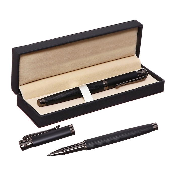Ручка подарочная роллер в кожзам футляре Офис корпус черный