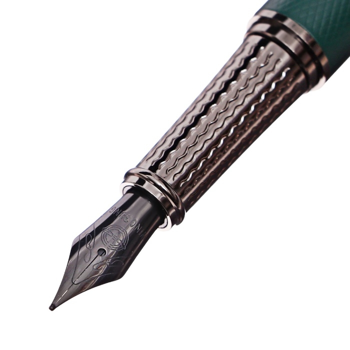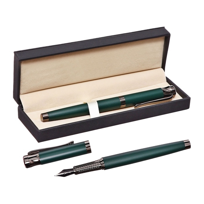 Ручка подарочная перьевая в кожзам футляре Офис корпус зеленый
