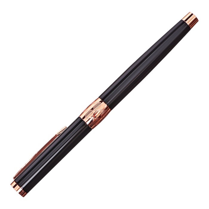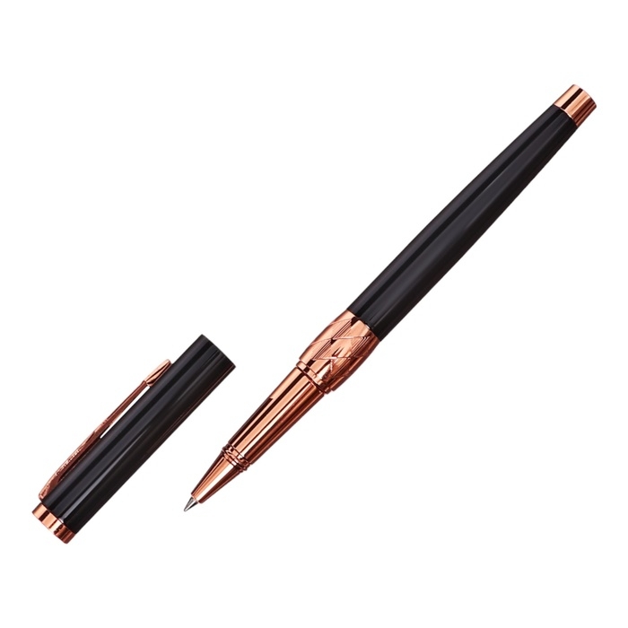 Ручка подарочная роллер в кожзам футляре Грант корпус черный/бронза