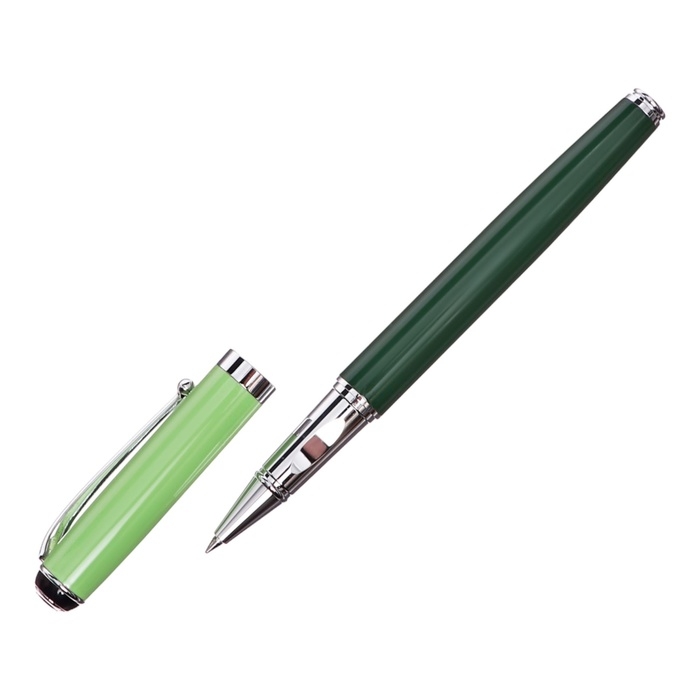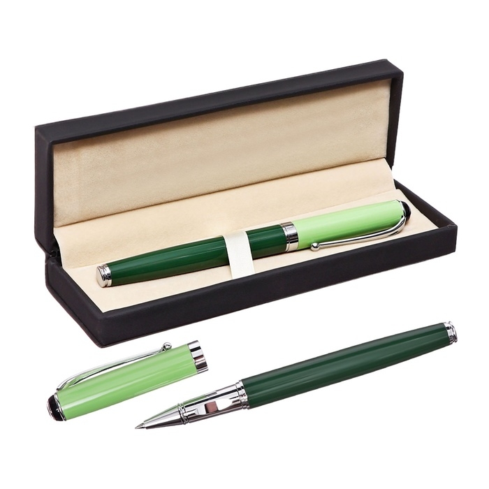 Ручка подарочная роллер в кожзам футляре Классика корпус зеленый/серебро
