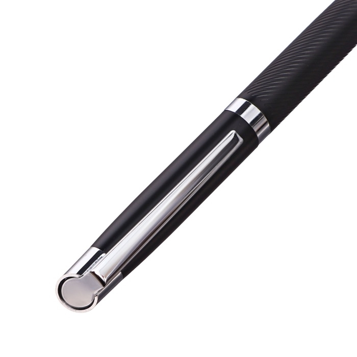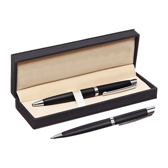 Ручка подарочная шариковая в кожзам футляре поворотная Карбон корпус черный/серебро