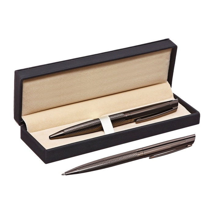 Ручка подарочная шариковая в кожзам футляре поворотная Карбон корпус темно-серый