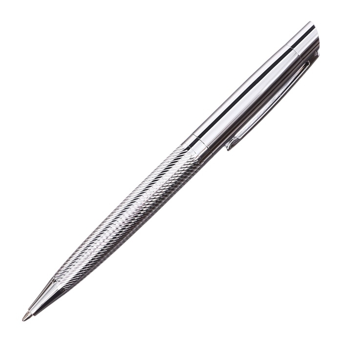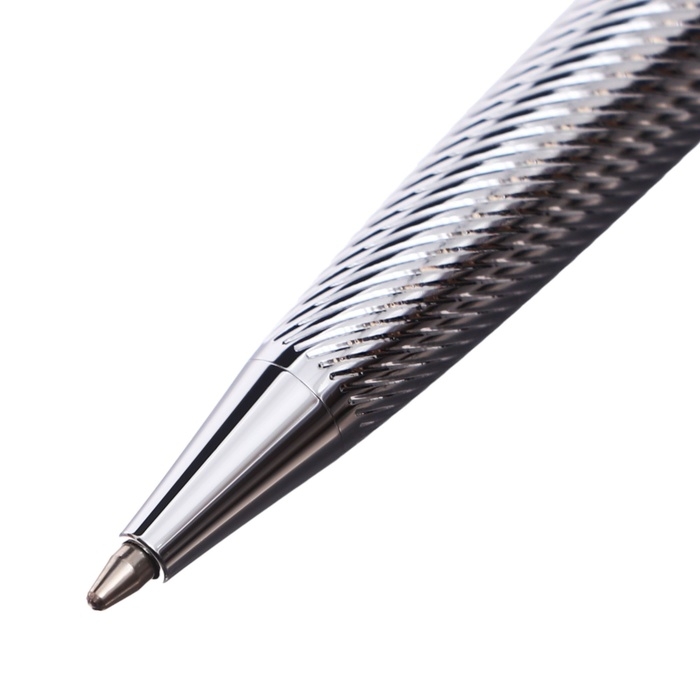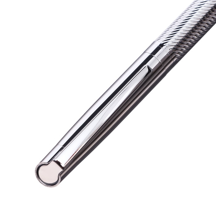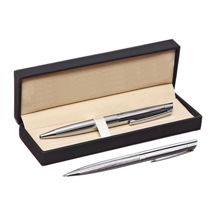 Ручка подарочная шариковая в кожзам футляре поворотная Карбон корпус серебро