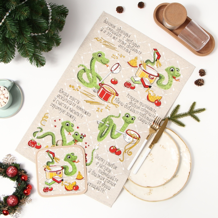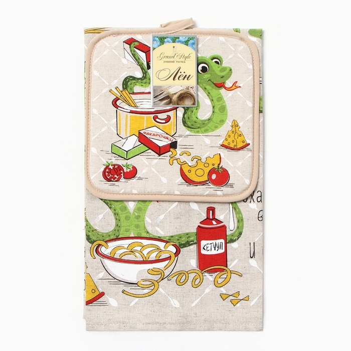 Кухонный набор "Рецепты Змей" (полот. 39х60 + прихв. 18х18см) 160г/м, лен50%, хл50%