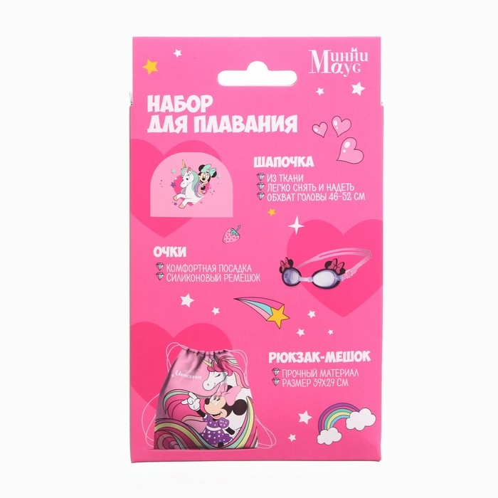 Набор детский «Минни», в комплекте шапка, очки для плавания, мешок
