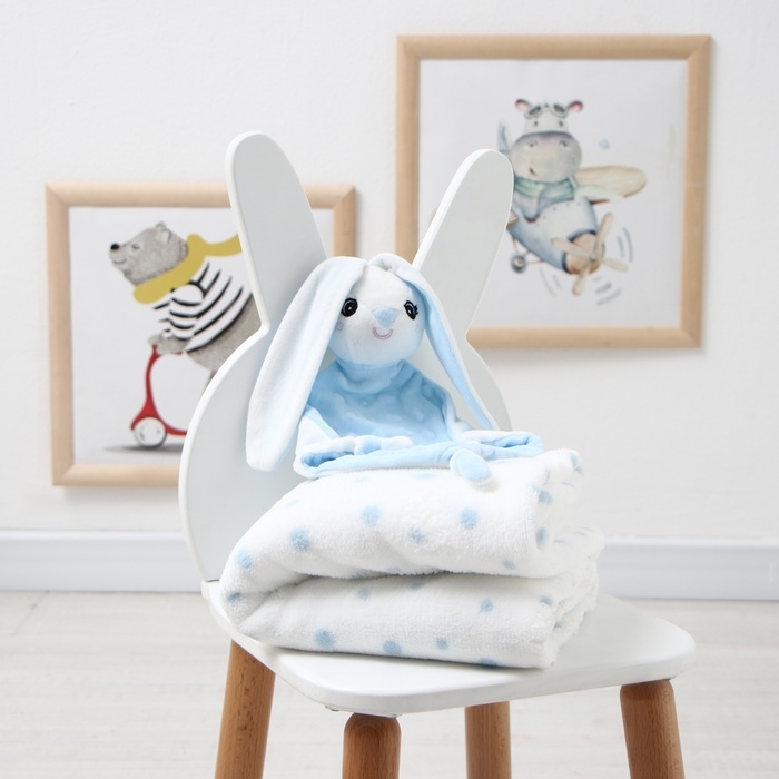 Плед с игрушкой Крошка Я "Зайка" 75*90см, цв. голубой