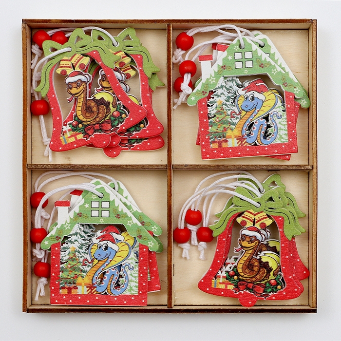 Набор подвесок в деревянной подарочной упаковке, 12 шт.