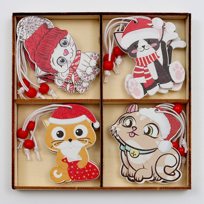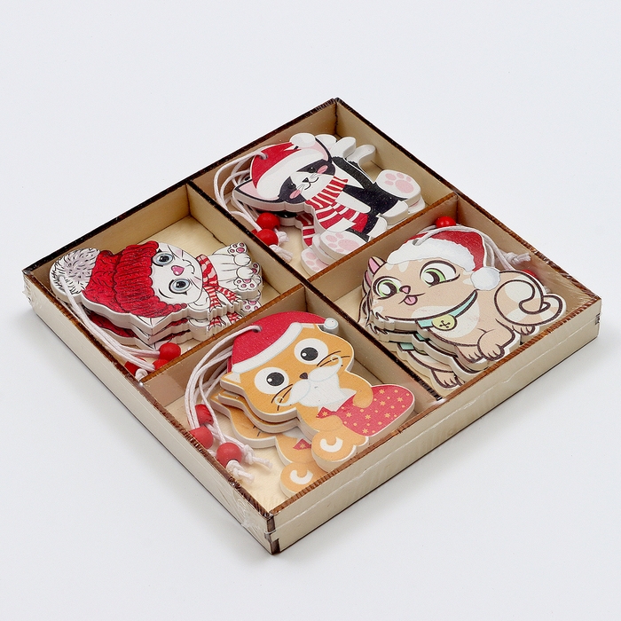 Набор подвесок в деревянной подарочной упаковке 12 шт.13x13x2 см