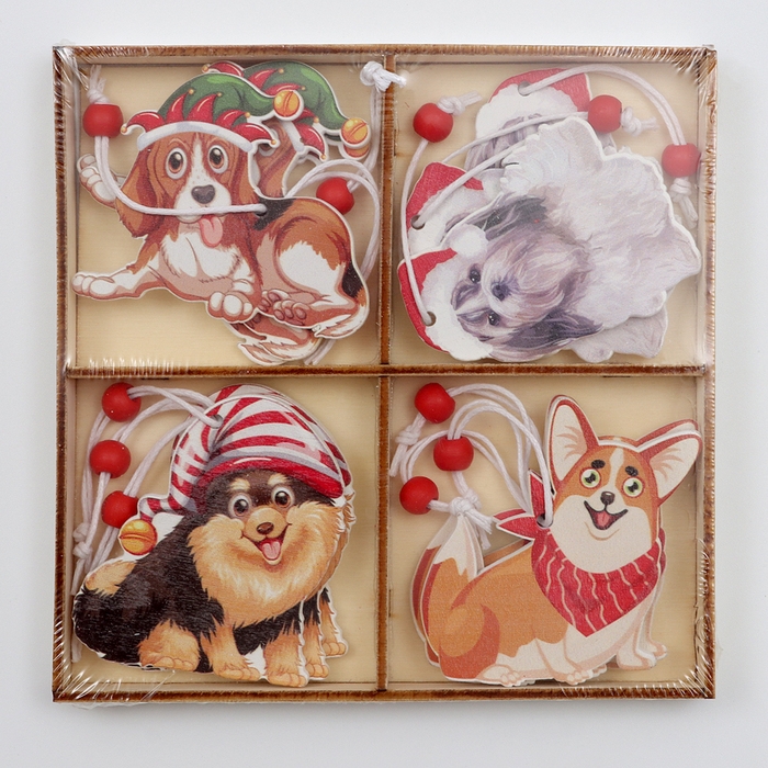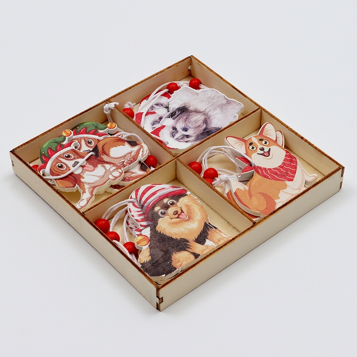 Набор подвесок в деревянной подарочной упаковке 12 шт.13x13x2 см