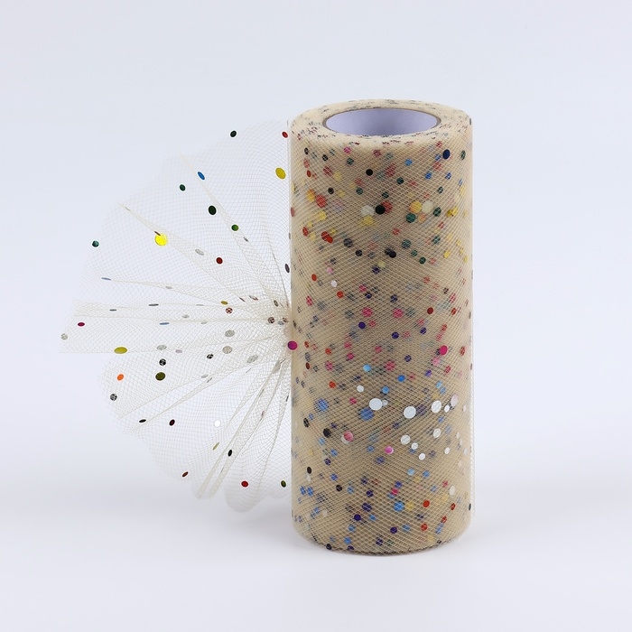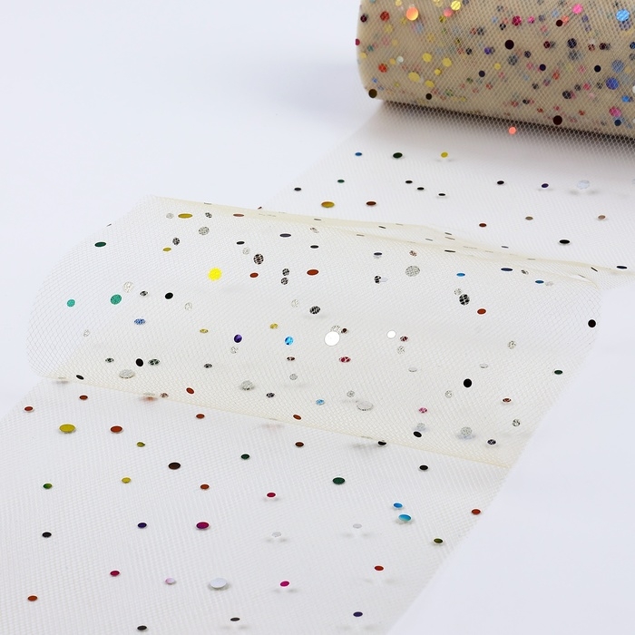 Фатин с разноцветными блёстками, 15 см, 11 ± 1 г/кв.м, 23 ± 1 м, цвет бежевый №4