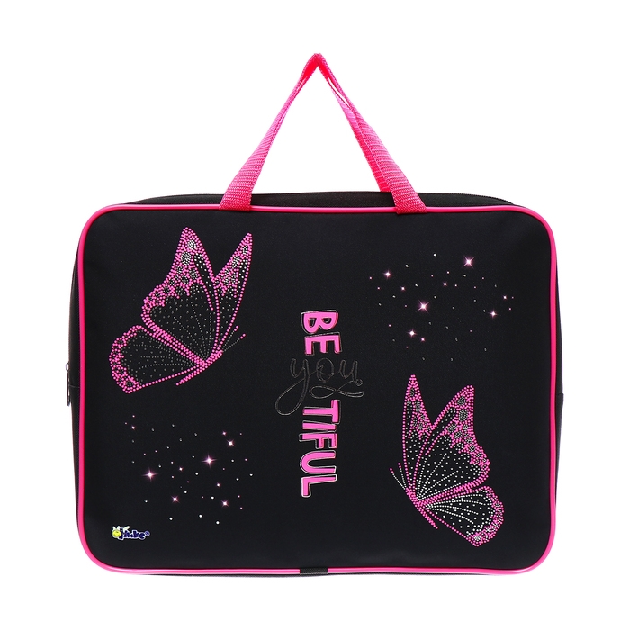 Папка с ручками текстиль А4, 350 х 265 x 80 мм, ПМД 4-22 "Бабочки" (объемный 3D-рисунок с эффектом металлика)
