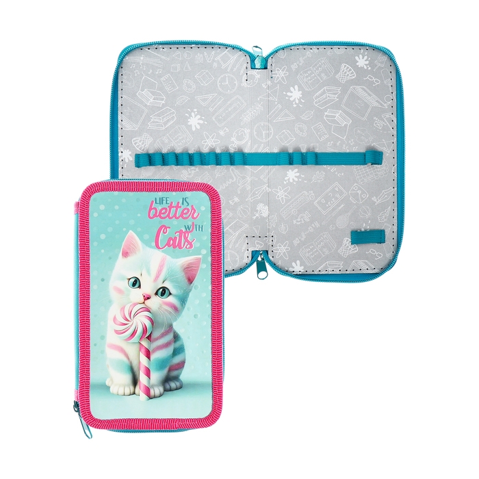 Пенал 2 секции 110*190 лам.кар ПКК 11-19 3D лак дев "Котик Карамелька" 72967