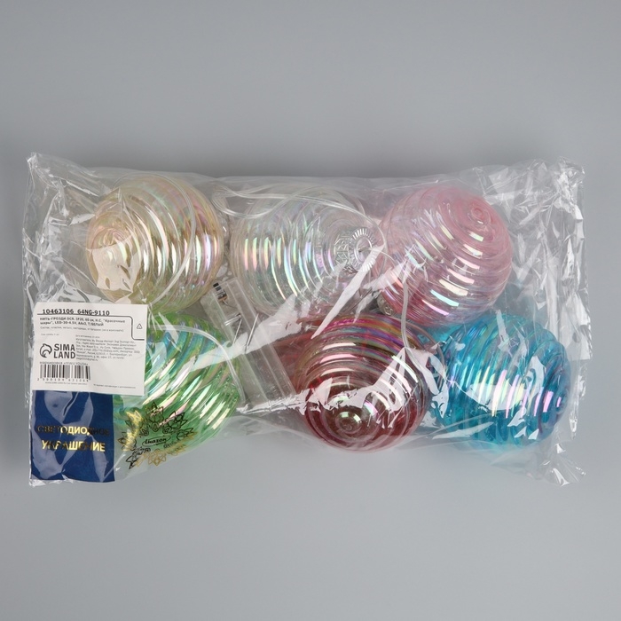 Гирлянда «Нить-гроздь» 60 см, нить прозрачная, «Красочные шары», 30 LED, 4.5 В, батарейки ААх3 (нет в комплекте), свечение тёплое белое