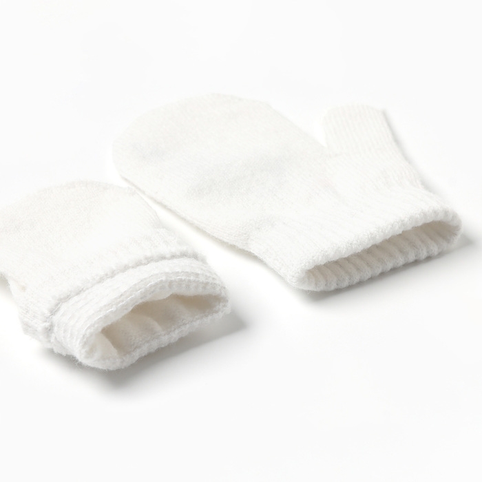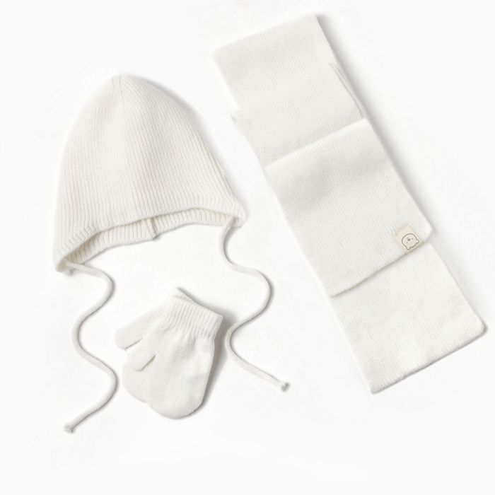 Комплект вязаный: шапка, шарф, варежки (1-3 года), молочный