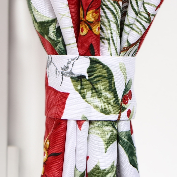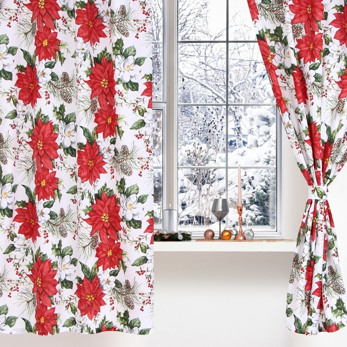 Комплект штор Доляна "Рождественские цветы" 145х180см-2шт. с подхватами, 100% п/э, 140гр/м2