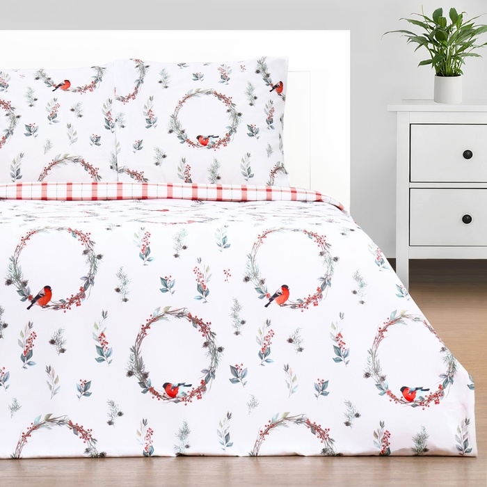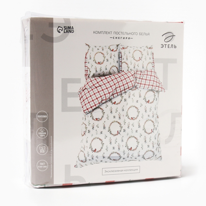 Постельное бельё "Этель" Снегири евро 200х217 см,220х240 см,70х70 см -2 шт,поплин 125 г/м2