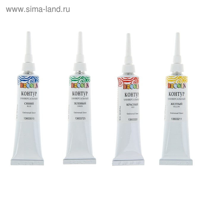 Контур универсальный, набор 4 цвета х 18 мл, ЗХК Decola, синий, зеленый, жёлтый, красный, 13641560