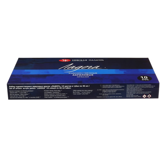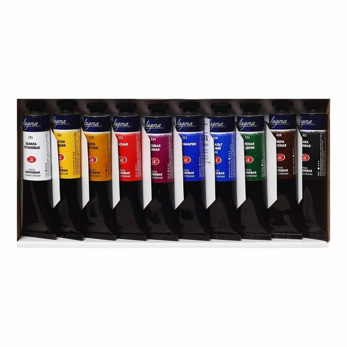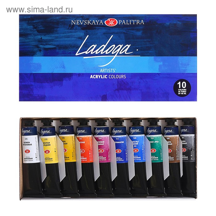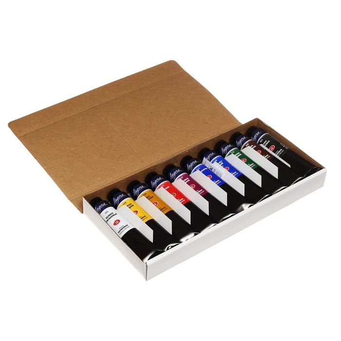 Краска акриловая в тубе, набор 10 цветов х 46 мл, ЗХК "Ладога", художественный, 2241142
