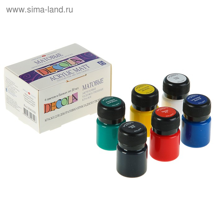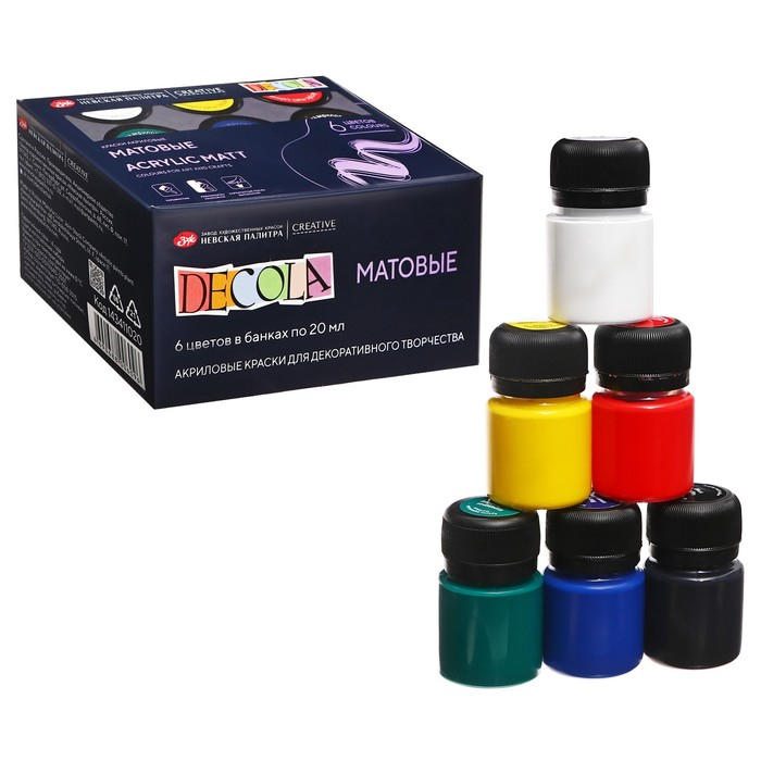 Краска акриловая, набор 6 цветов х 20 мл, Matt, ЗХК Decola, матовые, 143411020