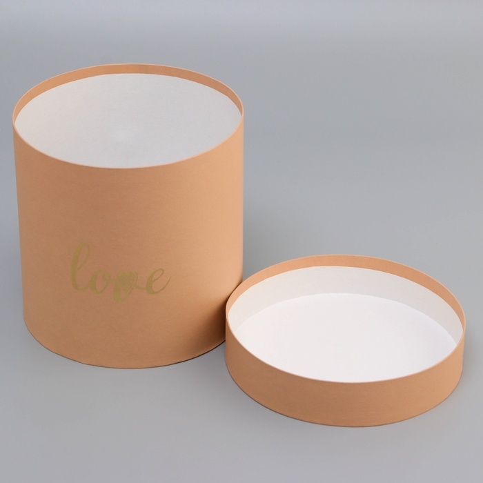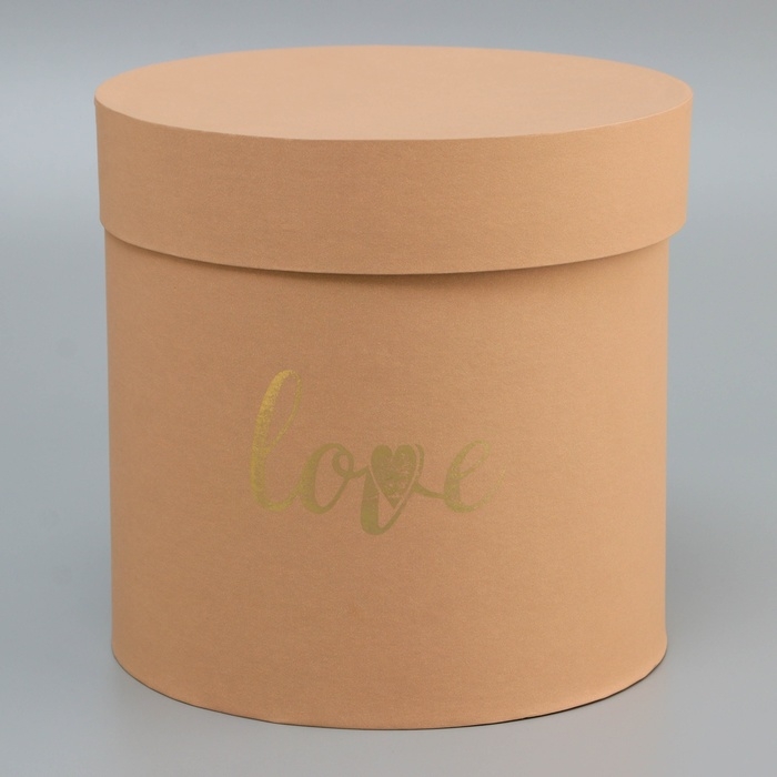 Коробка круглая с тиснением"Love"кофе с молоком 18*18*18см