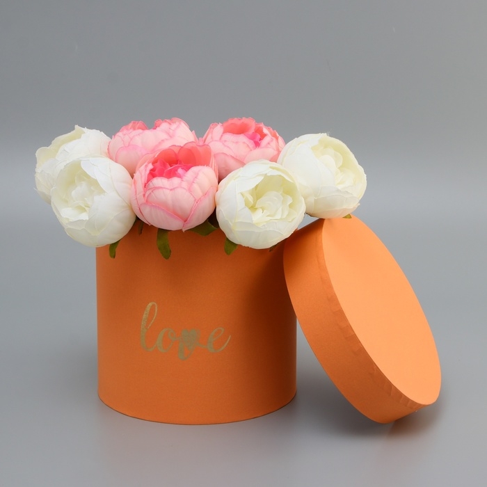 Коробка круглая,с тиснением "Love"оранжевая 18*18*18см