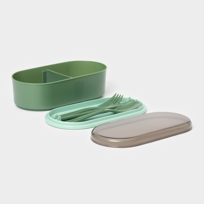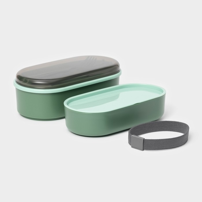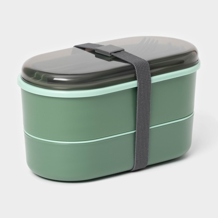Ланч - бокс двухуровневый с крышкой «Милитари», 17,5×9,2×6 см, 430 мл, 270 мл, столовые приборы, цвет зелёный