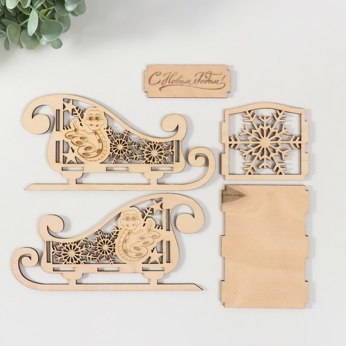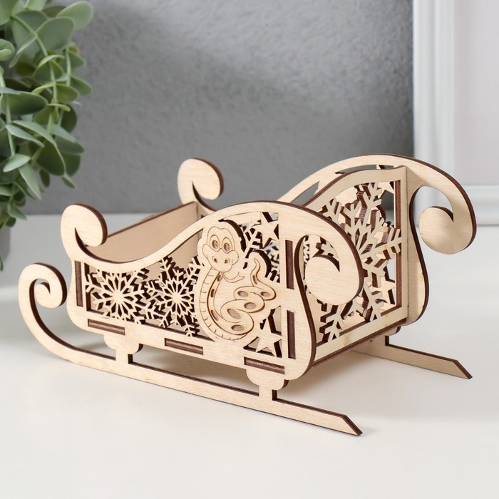 Шкатулка-сани "Змея. Снежинки, звёзды" 19,5х8,5х9,5 см (набор 5 деталей)