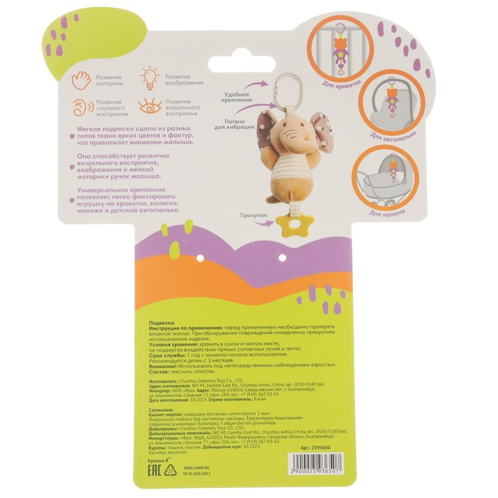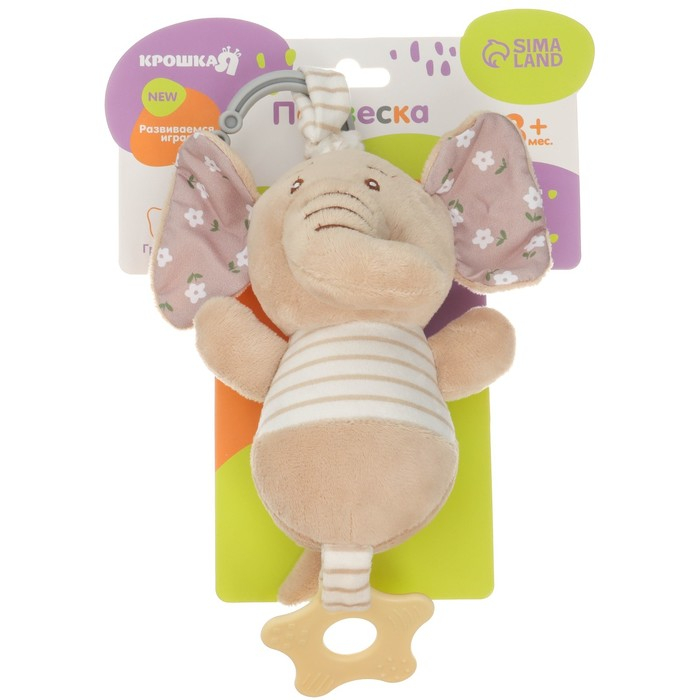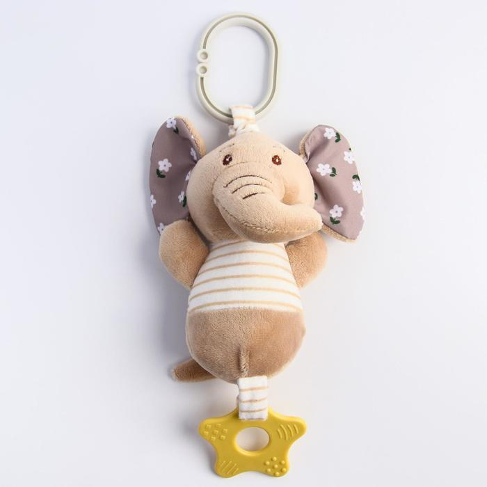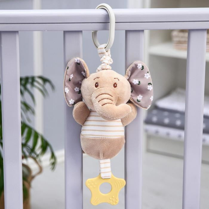 Подвеска мягкая с вибрацией «Слоник Няша», прорезыватель, на кроватку, коляску, Крошка Я