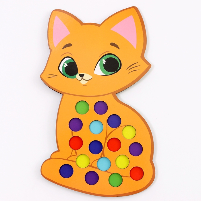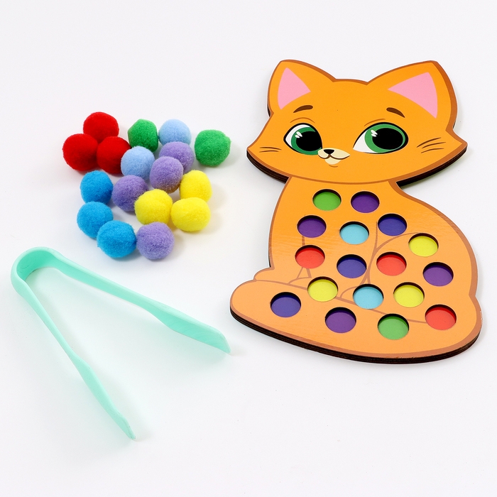 Сортер деревянный «Котёнок» с помпонами и пинцетом, 15 х 21 см