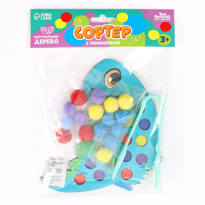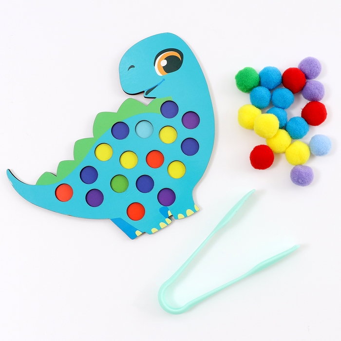 Сортер деревянный «Дино» с помпонами и пинцетом, 15 х 21 см