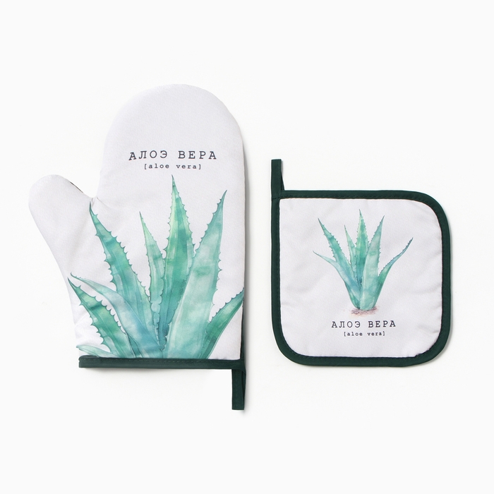 Набор кух."Алоэ вера" варежка-прих.20х27см, прихватка 17х17см 100% п/э