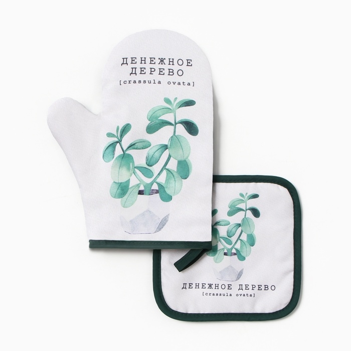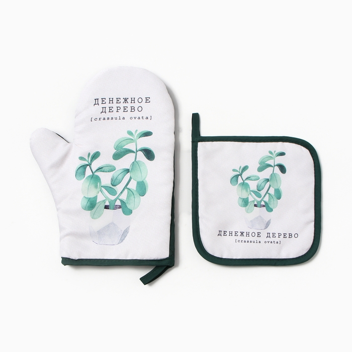 Набор кух."Денежное дерево" варежка-прих.20х27см, прихватка 17х17см 100% п/э