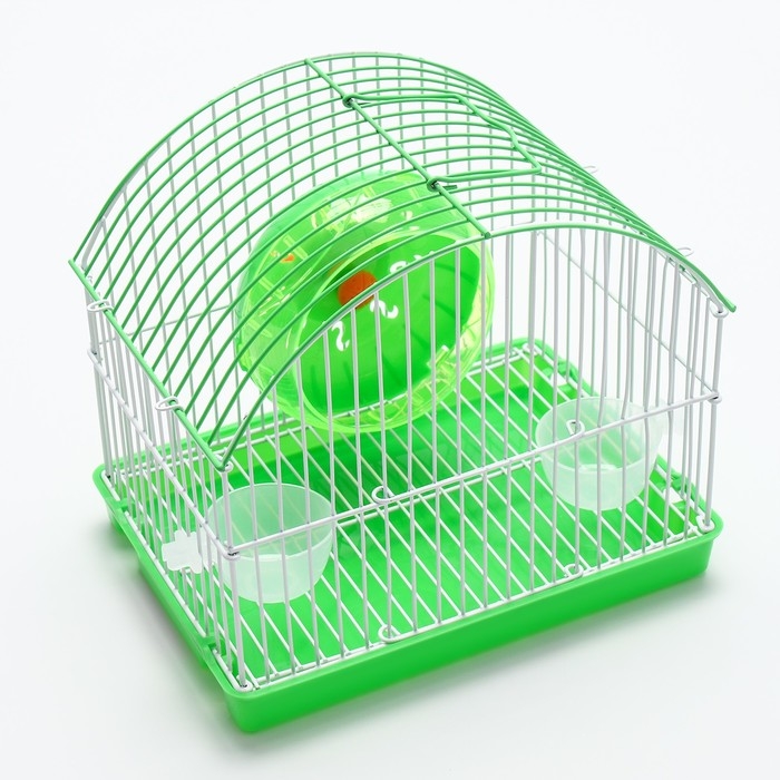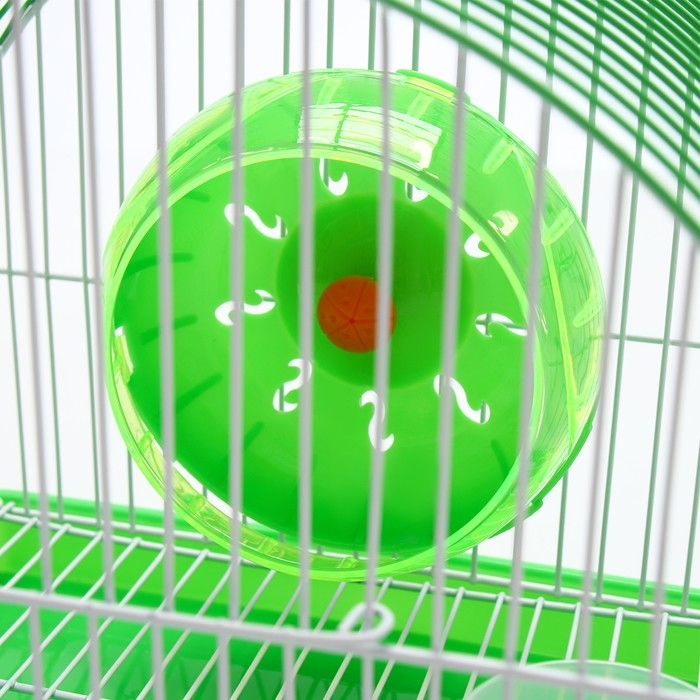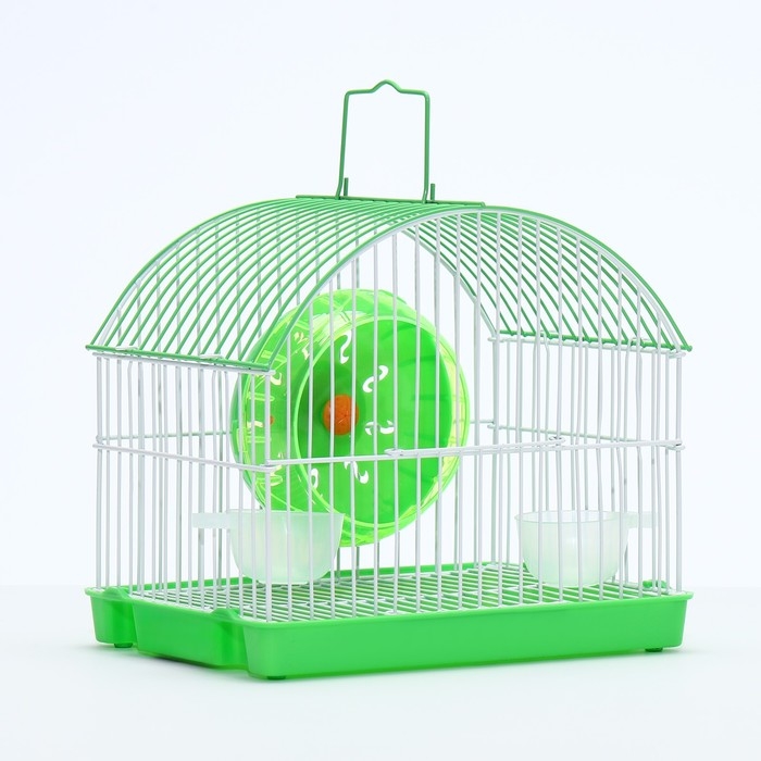 Клетка изготовлена из прочного металла и пластика, что гарантирует долговечность и надежность конструкции. Внутри вы найдёте все необходимое для комфортной жизни вашего питомца: беговое колесо для активных игр и поддержания формы, а также поилка, которая всегда обеспечит доступ к свежей воде.