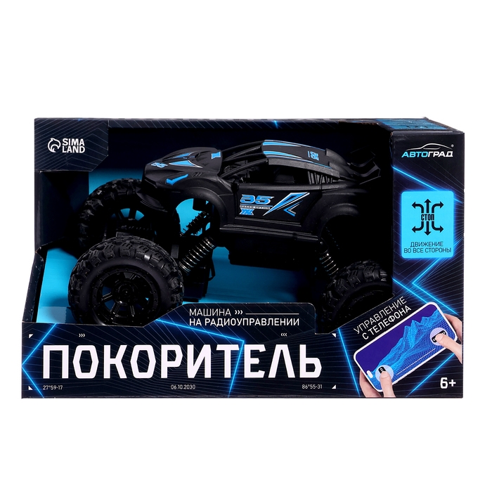 Джип радиоуправляемый «Покоритель», управление с телефона, работает от аккумулятора, цвет чёрный