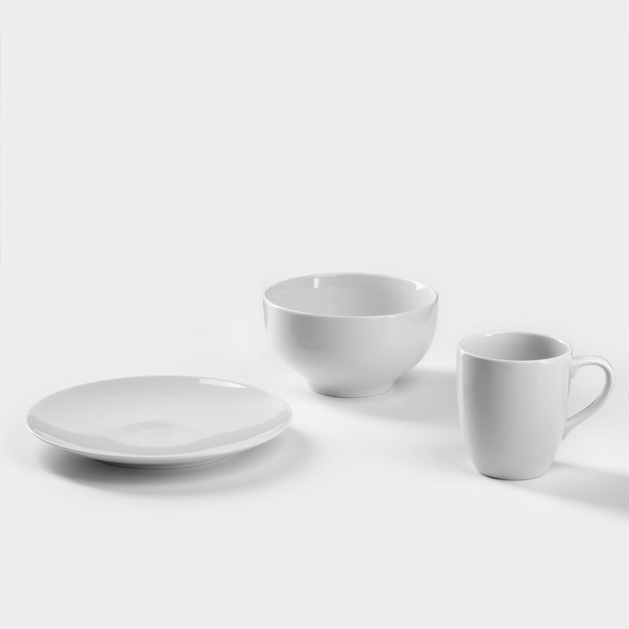 Набор фарфоровой посуды «Бельё», 3 предмета: тарелка плоская d=20 см, пиала 650 мл, кружка 300 мл