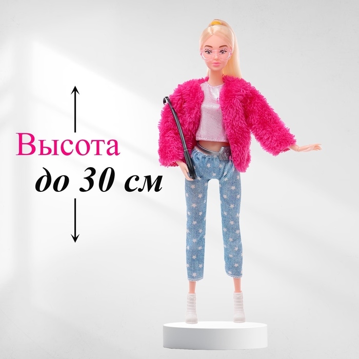 Представляем одежду и аксессуары для кукольной модницы. Этот набор включает в себя всё необходимое для создания стильного образа: куртку, брюки, ботинки, топ, сумку, ремень и очки. Разработан для кукол ростом до 30 см и подходит для детей старше 3 лет.