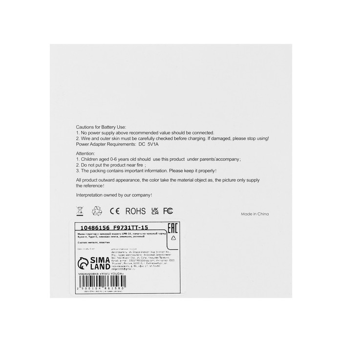 Мини-принтер с камерой LPR-21, Туре-С, лента, ремешок, розовый