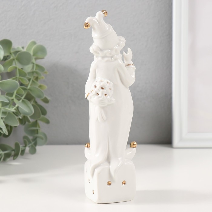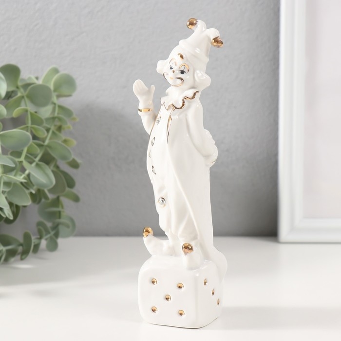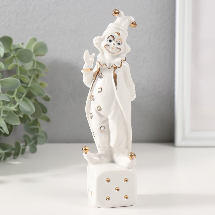 Сувенир керамика "Клоун на игральном кубике" белый с золотом, стразы 4,5х4,5х18 см