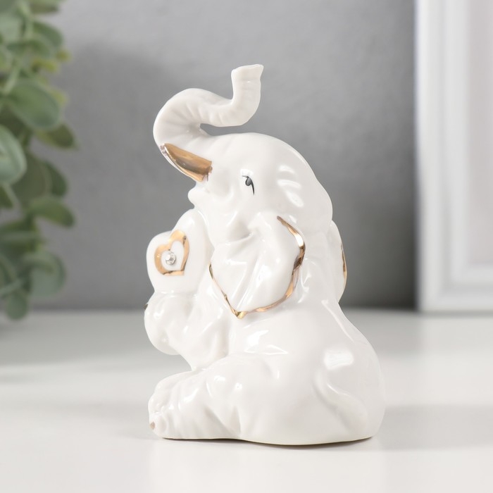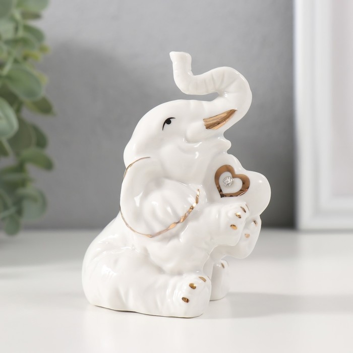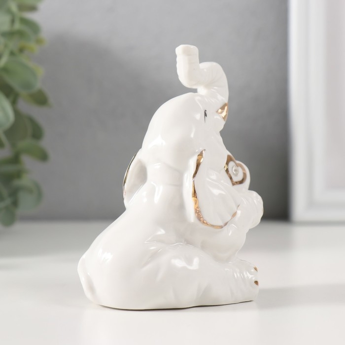 Сувенир керамика "Слон с сердечком" белый с золотом 5,7х7х9,5 см