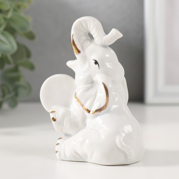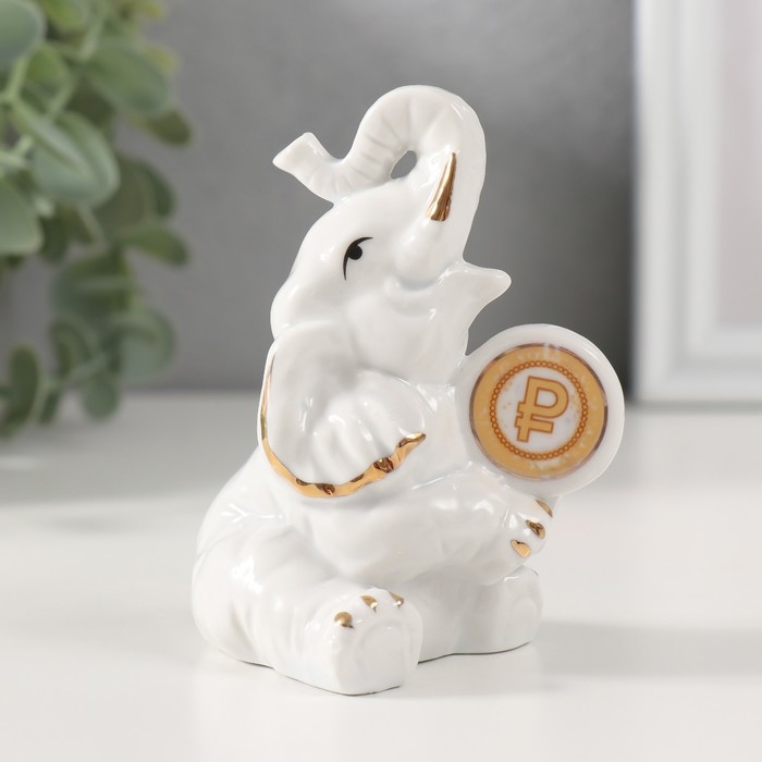 Сувенир керамика "Слон с монетой - рубль" белый с золотом 5,8х6,5х9,5 см