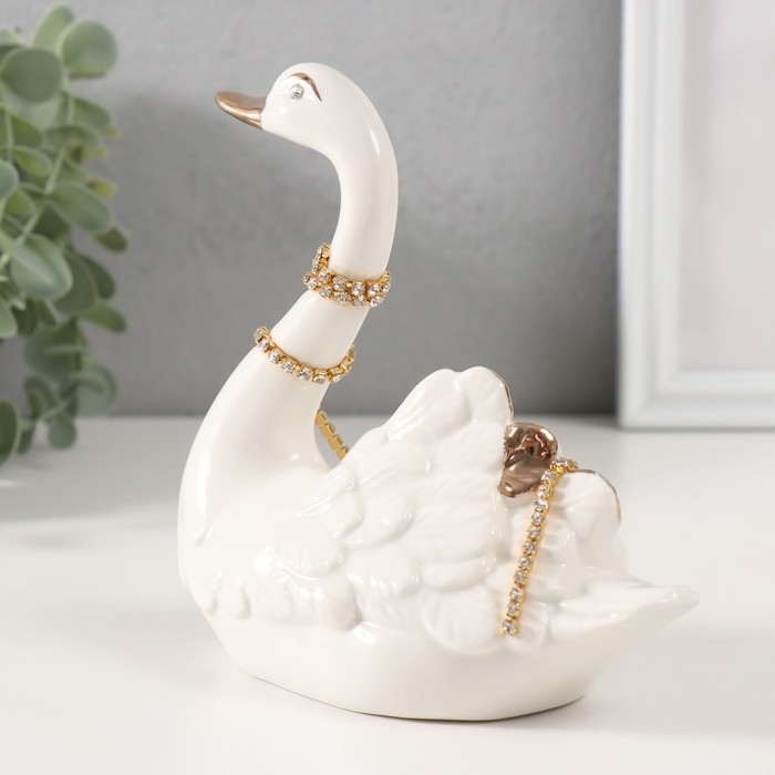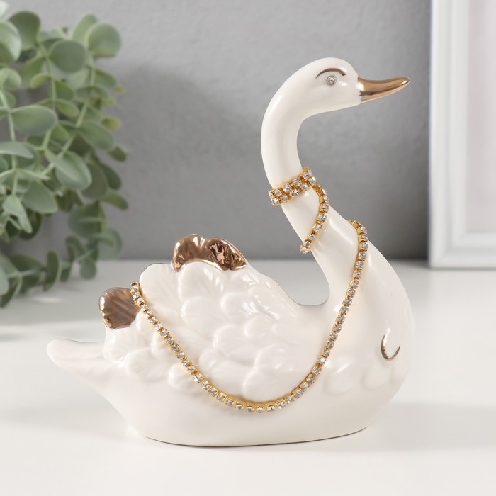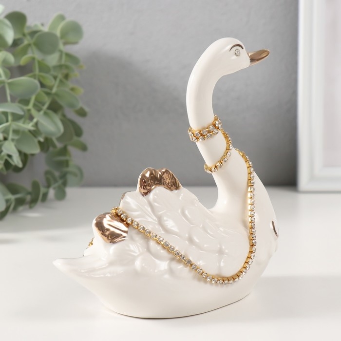 Сувенир керамика "Белая лебедь с ожерельем из страз" с золотом