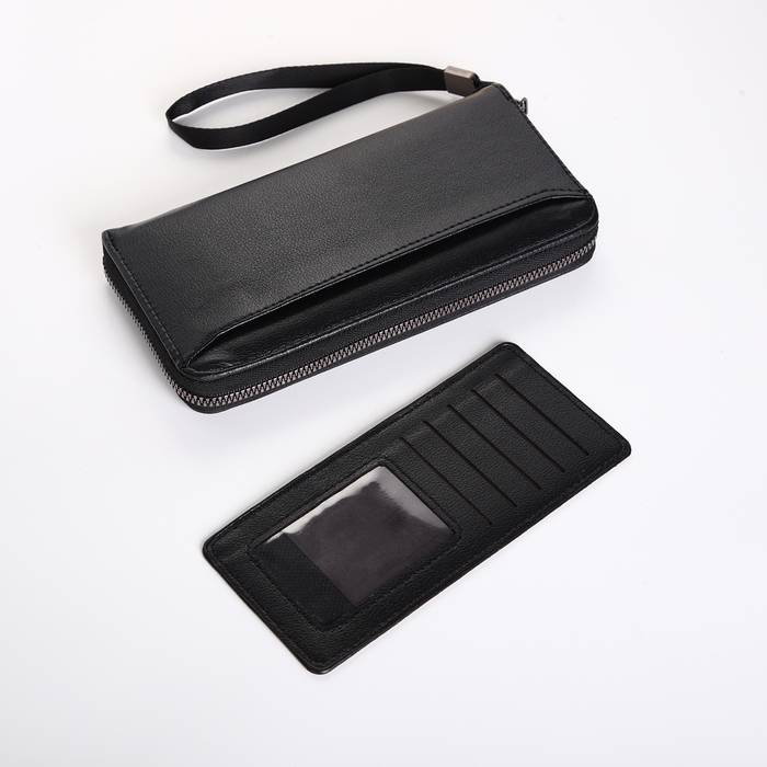 Портмоне-клатч мужской на молнии, цвет чёрный