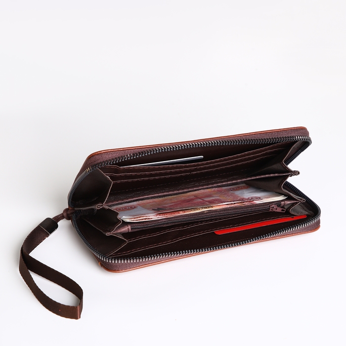 Портмоне-клатч мужской на молнии, цвет рыжий