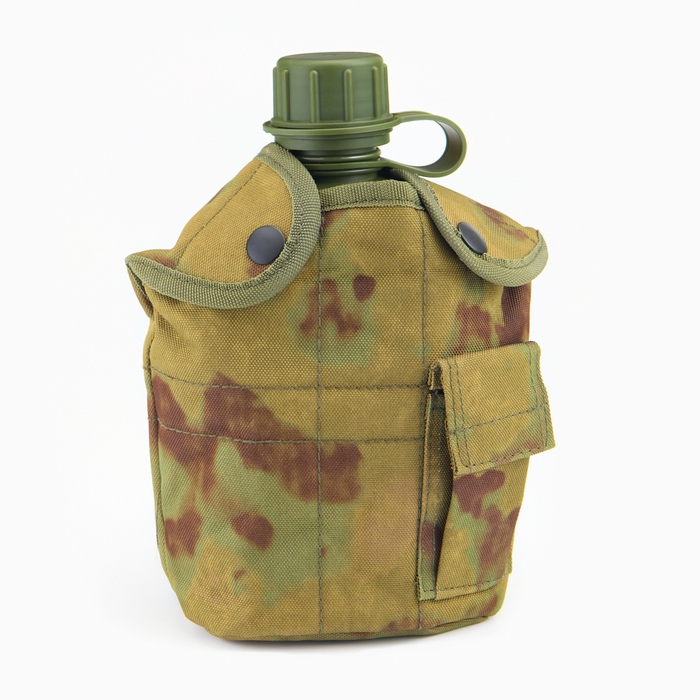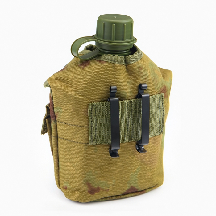 Фляжка армейская походная "Аdventure" 1 л для воды, с котелком, пластик, зелёная, чехол мох