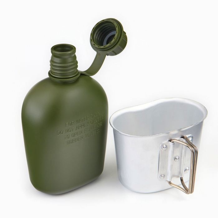 Фляжка армейская походная "Аdventure" 1 л для воды, с котелком, металл, зелёная, цифра