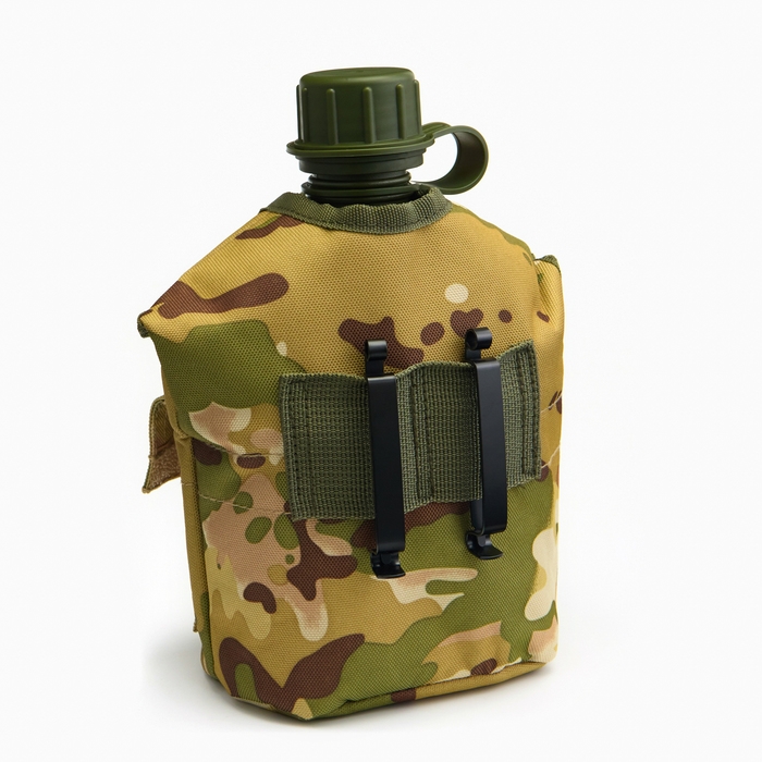 Фляжка армейская походная "Аdventure" 1 л для воды, с котелком, пластик, чехол мультикам