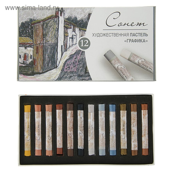 Пастель сухая, набор 12 цвета, Soft, ЗХК "Сонет" "Графика", D-8 мм /L-60 мм круглое сечение, художественная, 7141243